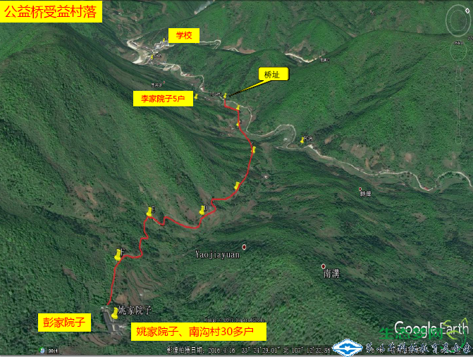 陜西省城固縣雙溪鎮(zhèn)雙溪村橋址地形