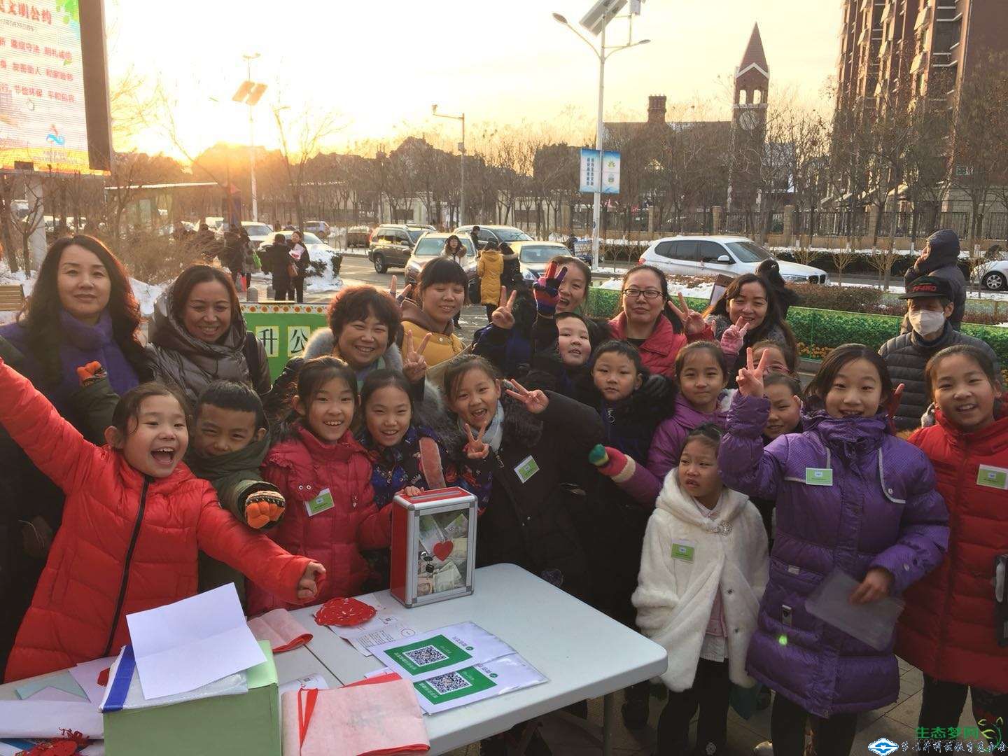 雖然在寒風(fēng)中站了那么長時間,孩子們的小臉和小手早就凍紅了,但他們一個個仰著紅撲撲的笑臉,熱情洋溢歡快無比,全然不顧雪天的嚴(yán)寒。