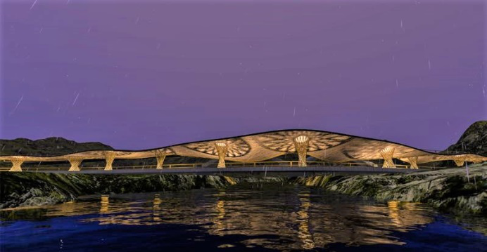 從正向來(lái)看,該建筑幾乎為二維結(jié)構(gòu),而側(cè)方向則是立體又三維的結(jié)構(gòu),多變的結(jié)構(gòu)形態(tài)能有效消除審美疲勞。在整個(gè)橋的景觀設(shè)計(jì)上,秉持著地域性、文化性和整體性原則,打造“一橋一景”,將適用、美觀相結(jié)合。