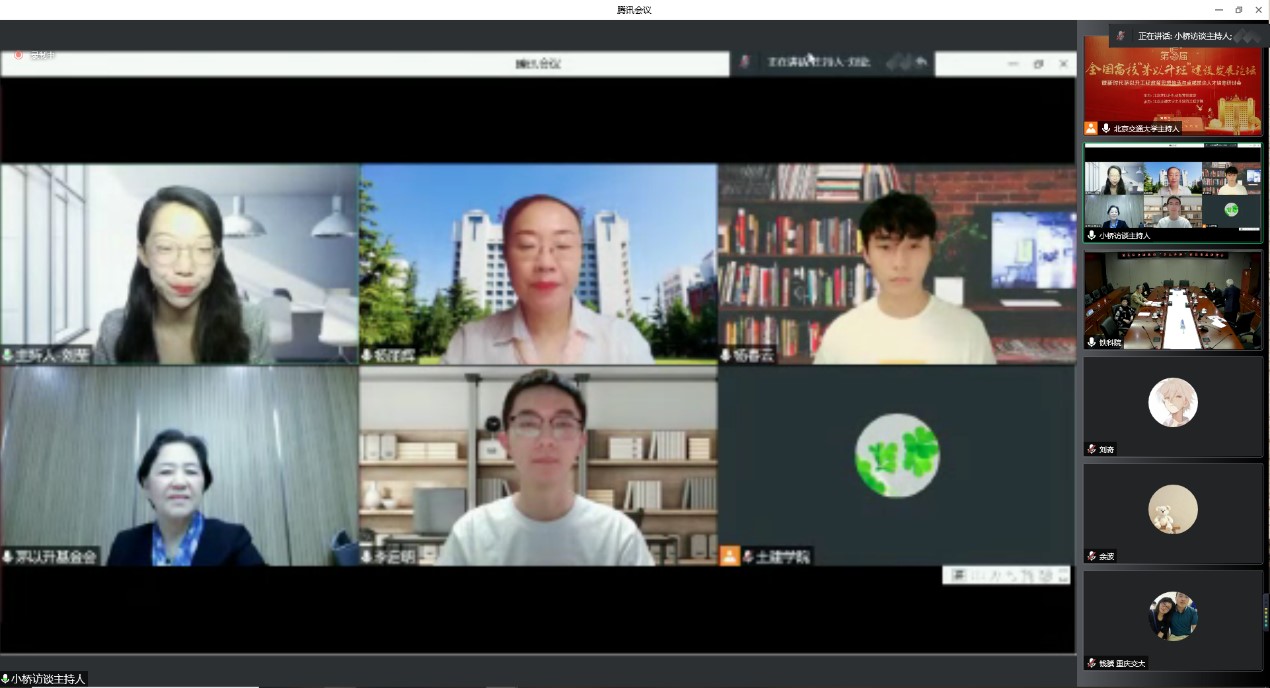 小橋心聲專訪風(fēng)采展示環(huán)節(jié)中,基金會(huì)特邀專家盛黎明、北京交大土建學(xué)院副教授楊麗輝以及“茅以升公益橋”團(tuán)隊(duì)學(xué)生代表參加線上專訪。訪談從基金會(huì)建立“茅以升公益橋”項(xiàng)目的緣起、北京交大建橋助力脫貧攻堅(jiān)過程以及師生踐行茅以升精神等方面,講述一批志愿造橋人的初心與熱血,體現(xiàn)了項(xiàng)目參與者們立大志、明大德、成大才、擔(dān)大任的情懷擔(dān)當(dāng),直播間頻頻發(fā)來點(diǎn)贊留言。