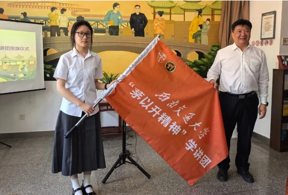茅為中理事長(zhǎng)為學(xué)講團(tuán)授旗。