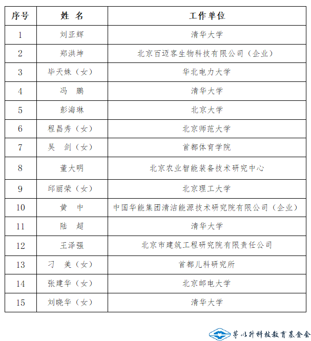 根據(jù)《茅以升北京青年科技獎(jiǎng)條例》、《茅以升北京青年科技獎(jiǎng)條例實(shí)施細(xì)則》有關(guān)規(guī)定有關(guān)要求,經(jīng)茅以升北京青年科技獎(jiǎng)評(píng)審委員會(huì)初評(píng)、終評(píng),推選劉亞輝等15人入選第二十屆茅以升北京青年科技獎(jiǎng)。
