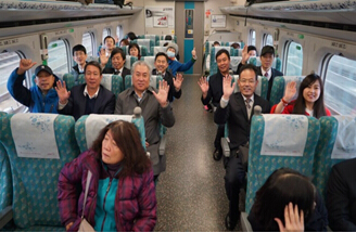 交流活動后,訪問團(tuán)搭乘高鐵由新竹到達(dá)臺中,實(shí)地考察了列車運(yùn)行情況和新竹、臺中車站。臺灣高速鐵路是連接臺灣的臺北市與高雄市之間的高速鐵路系統(tǒng),貫通臺灣西海岸,以臺北為起點(diǎn),經(jīng)板橋、桃園、新竹、臺中、嘉義、臺南至左營,共八個(gè)車站,全長345公里。高鐵采用日本新干線技術(shù),最高營運(yùn)速度300公里/小時(shí)。它的開通使往返臺北高雄兩市的時(shí)間縮短為1個(gè)半小時(shí)。臺灣高鐵車站雖設(shè)計(jì)簡約,但功能齊備,便捷的路線班次、多元的購票服務(wù)、貼心的列車服務(wù)、便利的轉(zhuǎn)乘接駁、周全的車站設(shè)施和服務(wù)設(shè)計(jì),無不給訪問團(tuán)團(tuán)員留下深刻的印象。