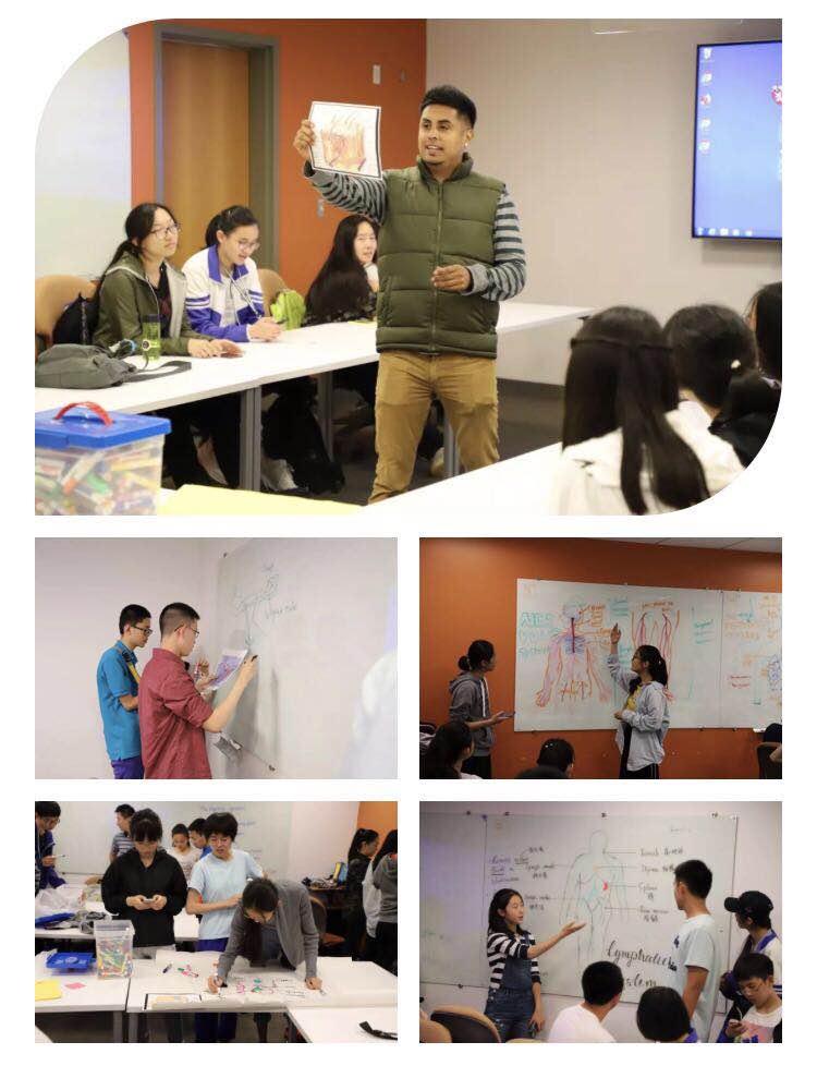 第六天,同學(xué)們來到哈佛醫(yī)學(xué)院,第一堂課來自哈佛醫(yī)學(xué)院Reyes博士帶來的人體各系統(tǒng)的認(rèn)知。同學(xué)們被隨機(jī)分到了不同小組,每組負(fù)責(zé)一個(gè)人體系統(tǒng),用繪畫的形式與大家分享你對(duì)該系統(tǒng)的了解,最后Reyes博士做了精彩補(bǔ)充。