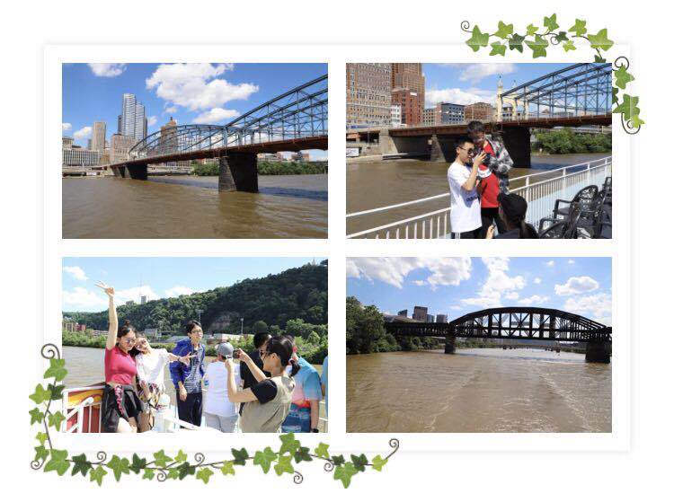隨后,同學(xué)們來到河邊,乘坐歷史悠久的最具城市代表的匹茲堡游船,一邊享受美景,一邊傾聽這一座座偉大橋梁背后的設(shè)計(jì)建造故事,每個(gè)精彩的故事體現(xiàn)著橋梁工程技術(shù)的發(fā)展和人類審美的進(jìn)步。